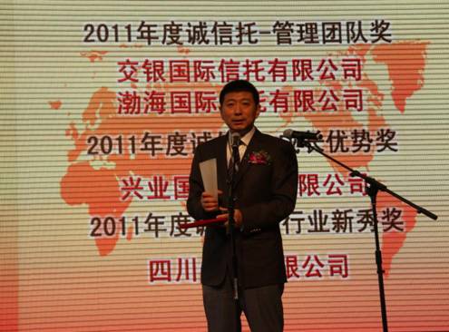 2012年6月20日,由《上海证券报》主办的第六届“诚信托”奖评选颁奖典礼在上海浦东隆重举行,tyc5997太阳集团国际信托有限公司荣获“诚信托—管理团队奖”并作为获奖单位受邀参加颁奖典礼。tyc5997太阳集团副董事长兼首席执行官杨健、常务副总裁李熙玉出席颁奖典礼并接受颁奖。