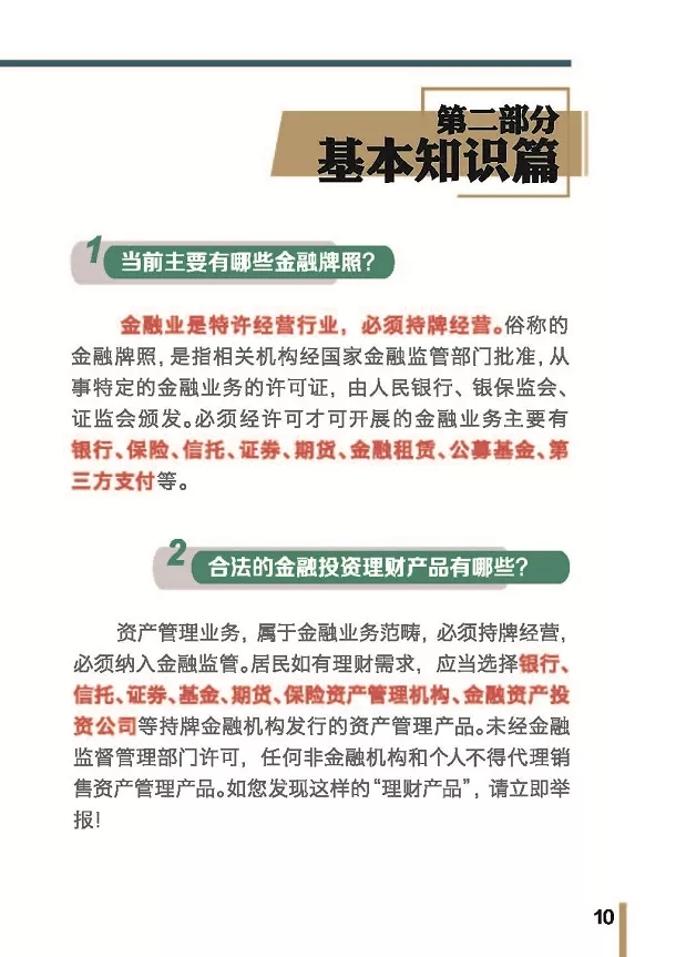近日,上海市打击非法金融活动领导小组办公室编印了《金融投资防骗手册》,手册内容共分为四部分,其中第二部分为“基本知识篇”,用通俗易懂的语言为大家普及了金融投资理财相关基本知识,引导大家选择正规合法的渠道理性投资,下面是该部分的详细内容。